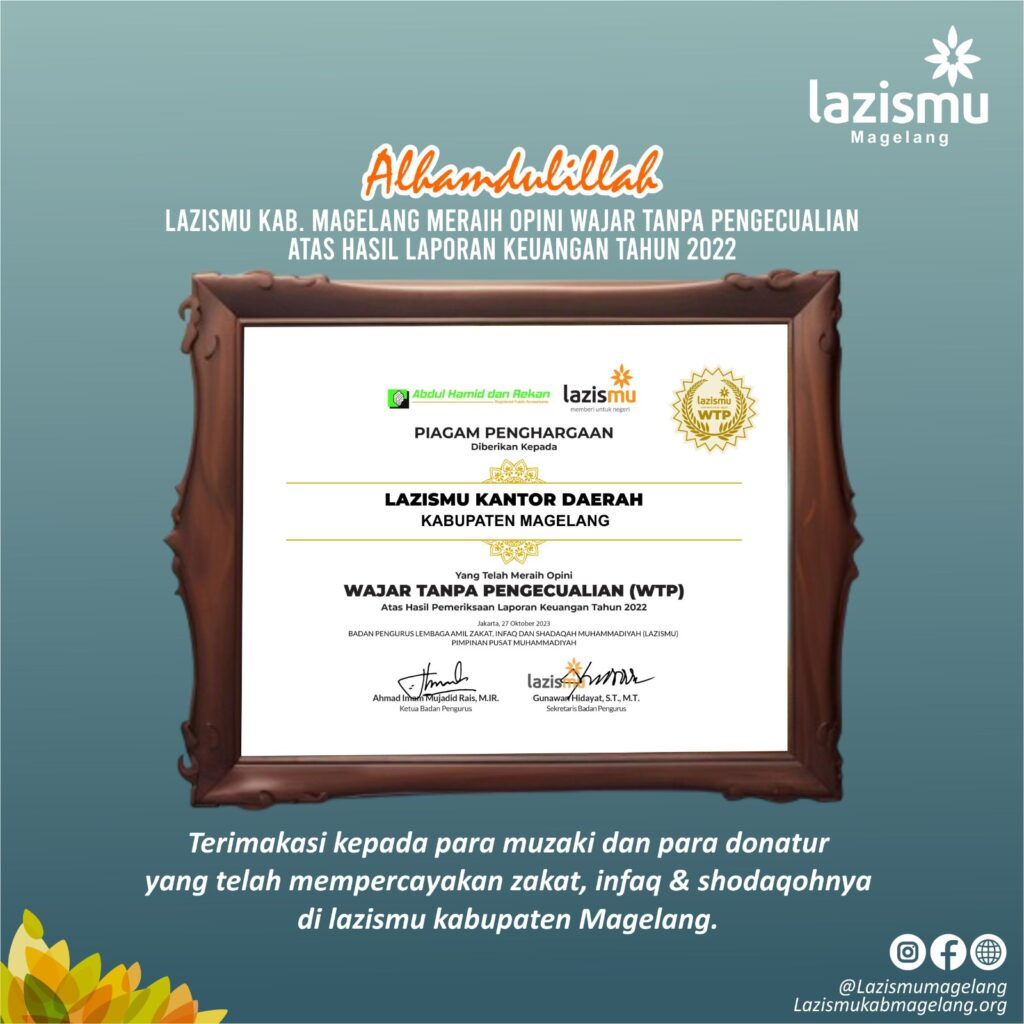 HASIL AUDIT LAZISMU MAGELANG : RAIH PREDIKAT WAJAR TANPA PENGECUALIAN (WTP)